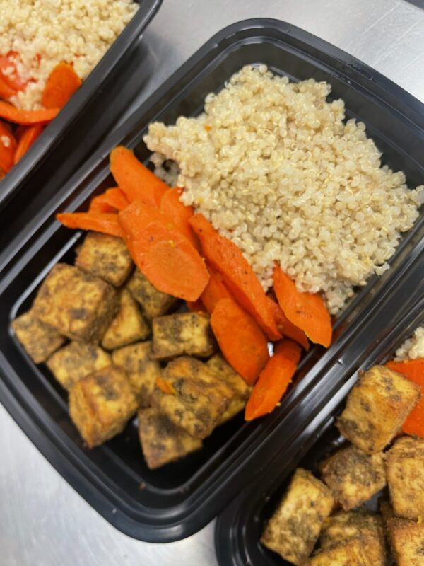 Inspired by cornell chicken, this tofu is marinated in a blend of herbs and seasonings. Served with roasted carrots and quinoa.