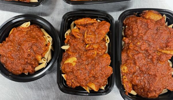Chicken sausage in a house-made marinara sauce, over a bed of zucchini noodles.